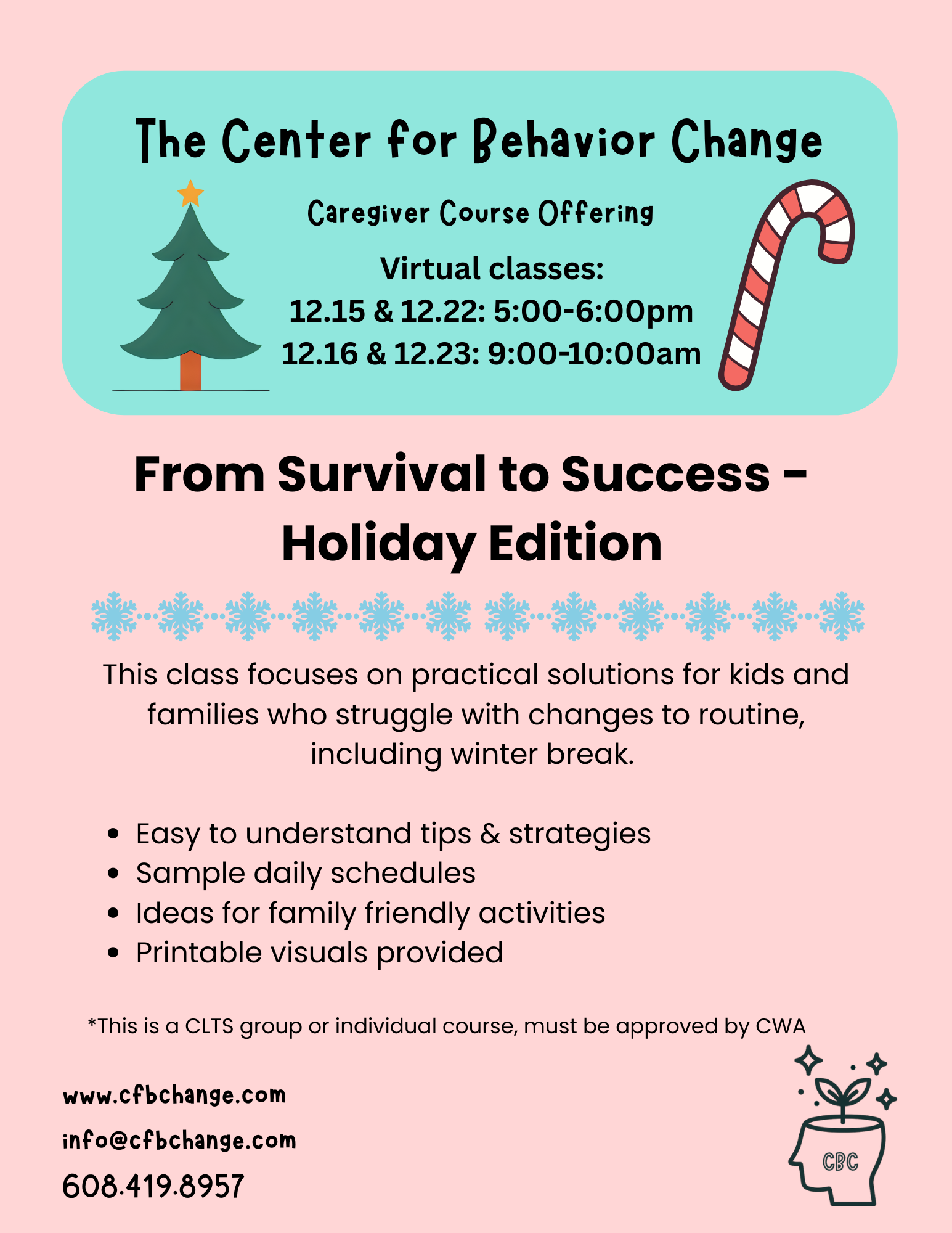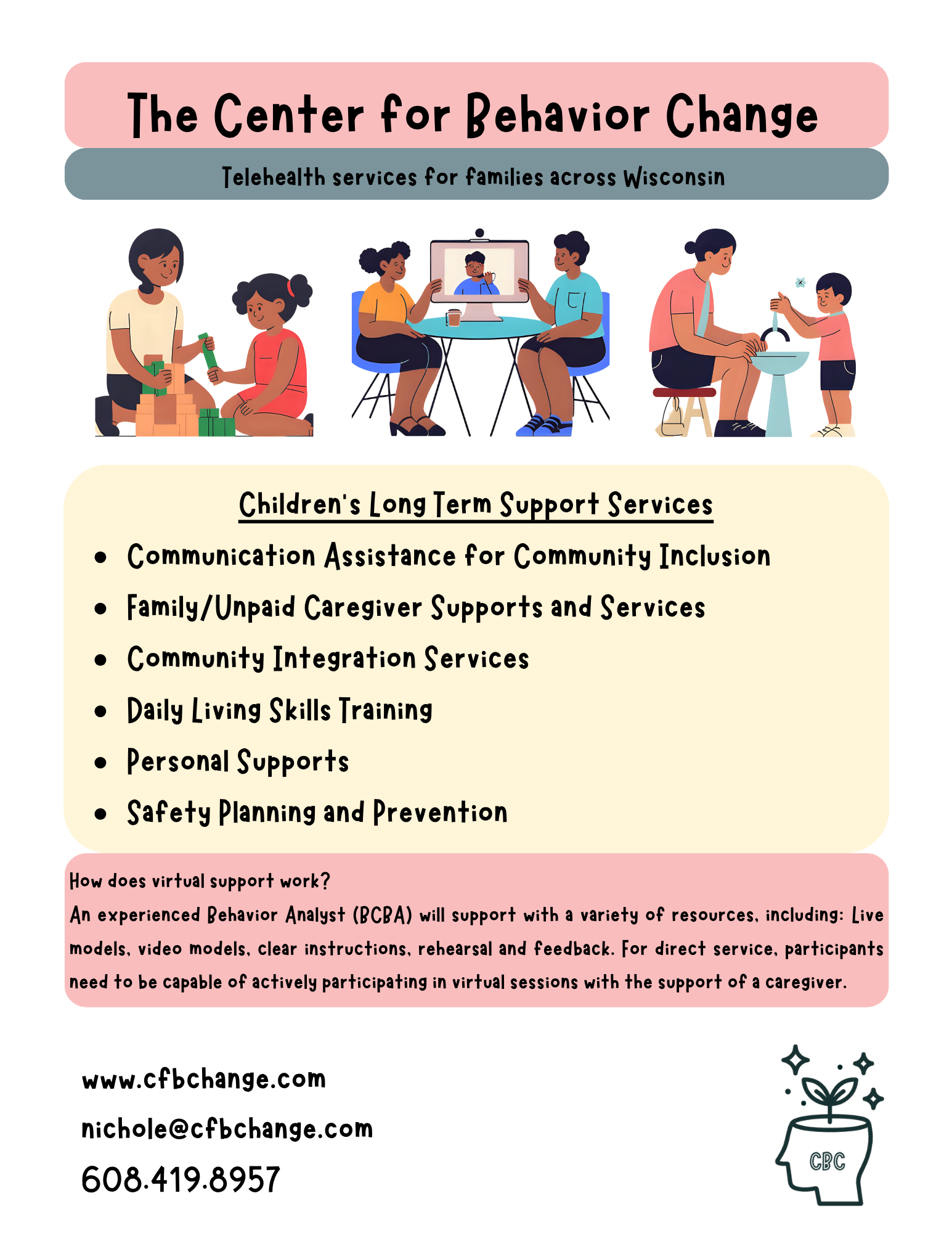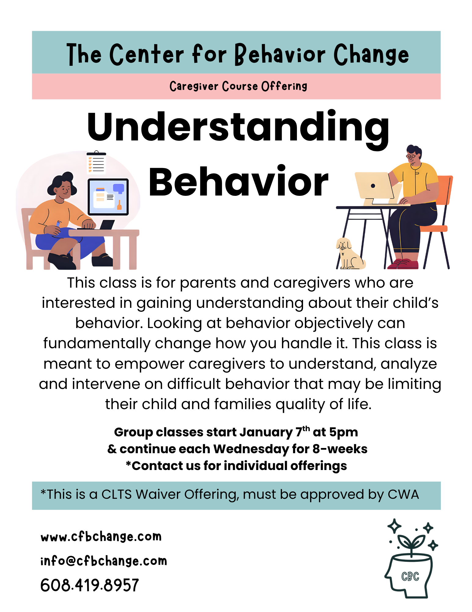 The Center for Behavior Change is a Wisconsin CLTS provider statewide for participants of all ages. Services outside of Dane County are offered remotely.